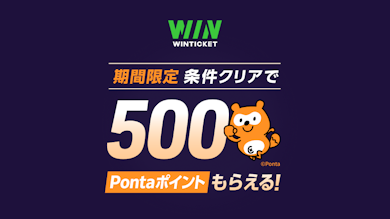 キャンペーン期間中にWINTICKETを新規会員登録し、Ponta会員ID連携のうえ、本キャンペーンページ記載の対象「プロモーションコード」をWINTICKETマイページ内よりご入力いただくと500PontaポイントとWINTICKETポイント500ポイントをプレゼントいたします。
